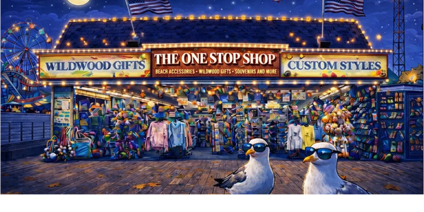 one-stop shop for surf gear, beach essentials, trending apparel, USA 250th anniversary merch, seagull stuffed animals, hermit crabs, and more—everything you need for the perfect boardwalk and beach experience!